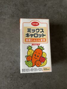 野菜が取れてない日があれば、おやつに生協のミックスキャロットを飲ませることも。