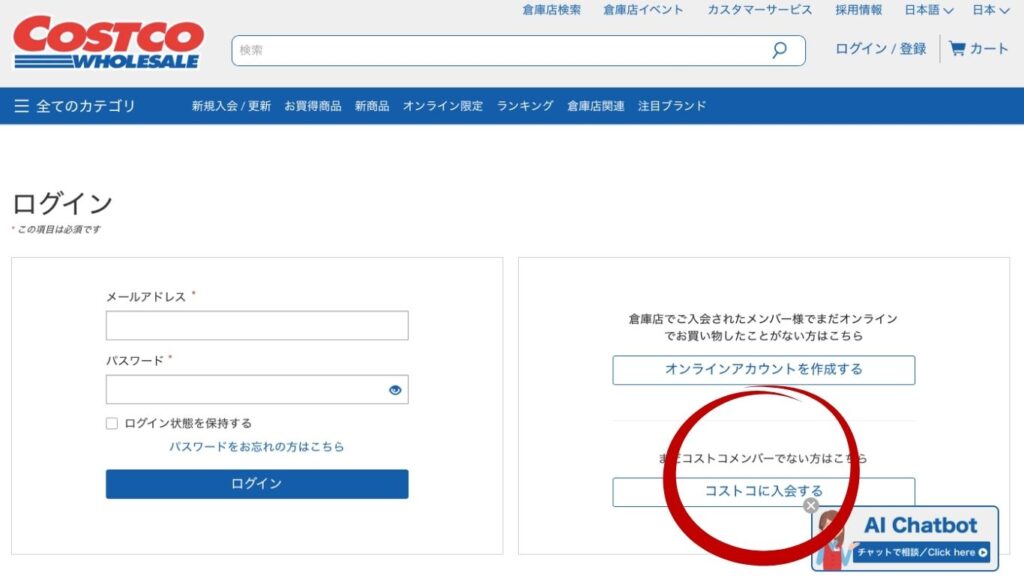 コストコオンラインでお買い物をだけなら、ネットで簡単に入会出来ることが分かりました。