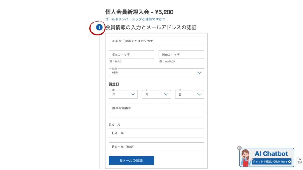 ④会員情報の入力とメールアドレスの認証をします。