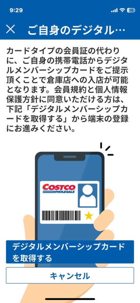 デジタルメンバーシップカードをスマホで作成したとしても、有効化を倉庫のカウンターでする必要があります。