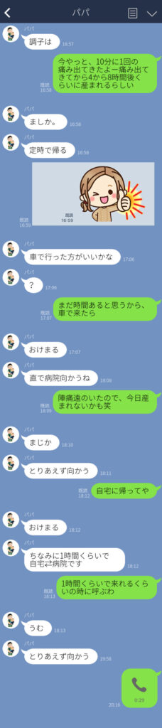 最後陣痛が来てしまい電話で早く来てと連絡しました。